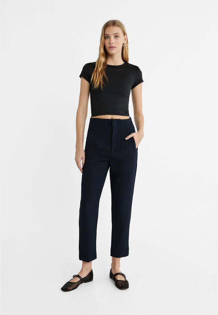 Elevate your spring/summer wardrobe with these stylish Stradivarius blue pants. Perfect for a casual yet elegant look, "Pantaloni Eleganti Pince Azzurro Mare" features a flattering silhouette and a versatile color. Pair them with a flowy blouse or a simple t-shirt for a chic and easy-to-wear outfit. Whether you're headed to a brunch date or a night out with friends, these pants will keep you looking fabulous all season long.