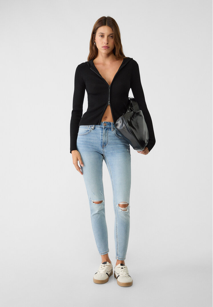 stradivarius jeans 1420 skinny low waist denim blue 40_skinny fit pants with five pockets. front closure with zipper and metal button. waist: low waist, under l'ombelico fabric: super elasticized fitting: