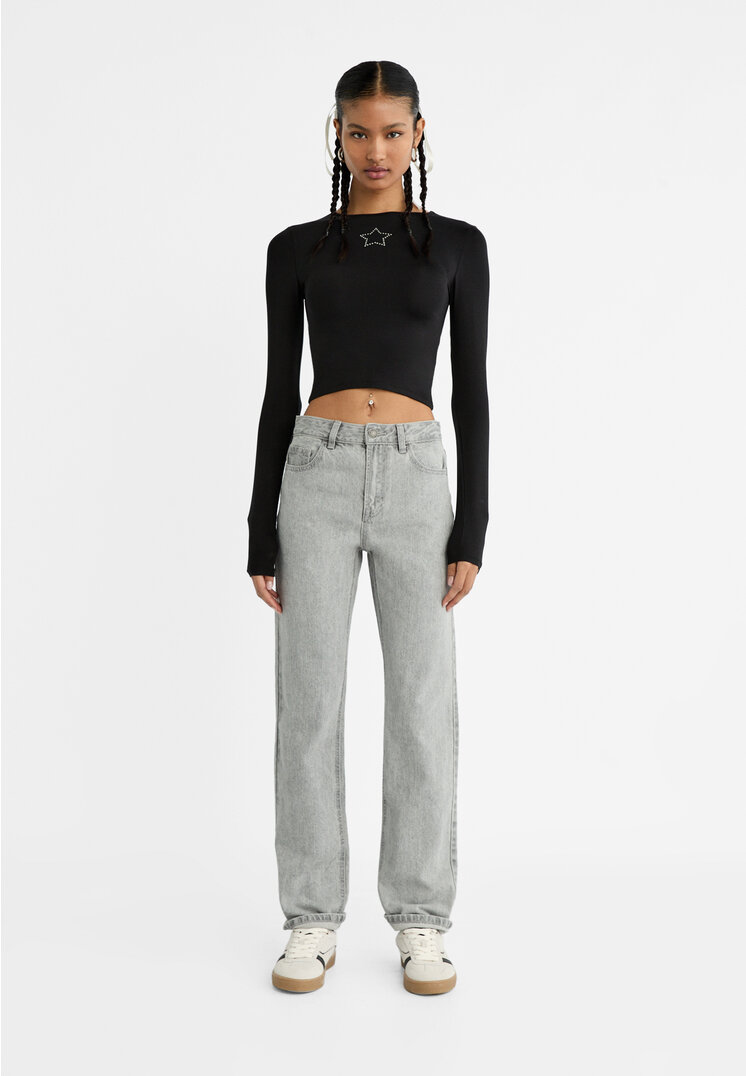 Stay chic and stylish this Spring/Summer with the Stradivarius Straight Fit Denim in Black. This versatile pair of jeans effortlessly combines casual and elegant vibes, perfect for any occasion. The timeless black color adds a touch of sophistication to your outfit, while the straight fit ensures a flattering silhouette. Elevate your wardrobe with this must-have piece for the season.