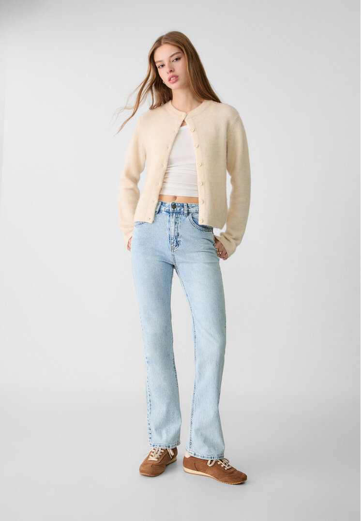 stradivarius jeans straight high waist comfort denim 42_jeans high waist with five pockets and straight leg. front closure with zipper and button. available in different colours.
