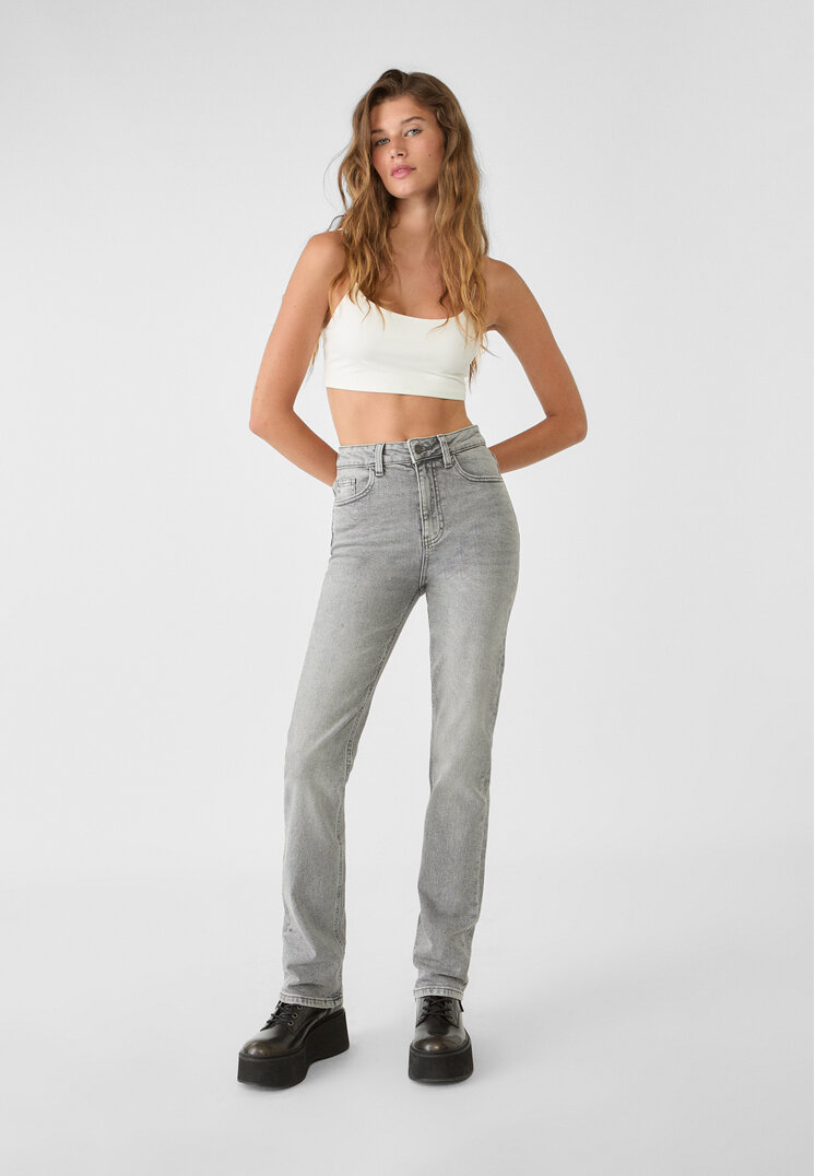 stradivarius jeans straight high waist comfort denim black 38_jeans high waist with five pockets and straight leg. front closure with zipper and button. available in different colours.