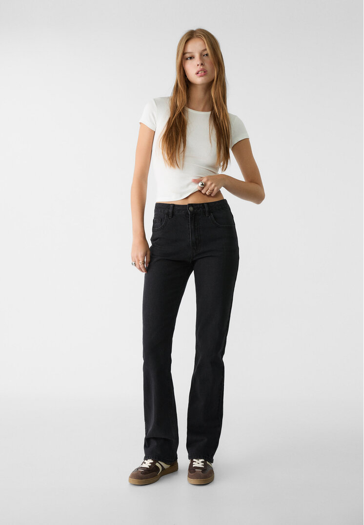 stradivarius jeans straight high waist comfort denim black washed 40_jeans high waist with five pockets and straight leg. front closure with zipper and button. available in different colours.