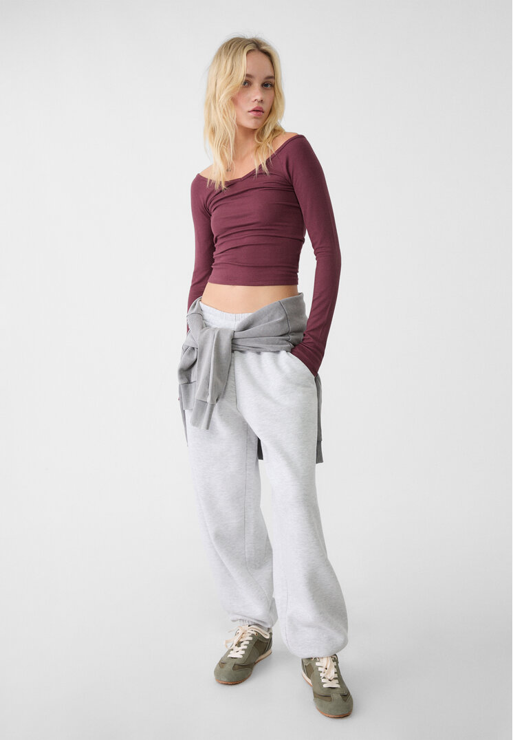 stradivarius jogging pants in boyfriend sweatshirt gray melangiate xs_pantaloni jogger "boyfriend" in sweatshirt with waist and elasticized edges. side pockets for greater comfort. available in different colours.