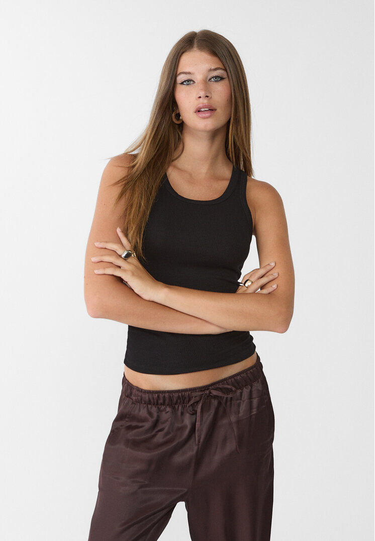 stradivarius olympic black s_canotta olimpionica shirt with round neck.