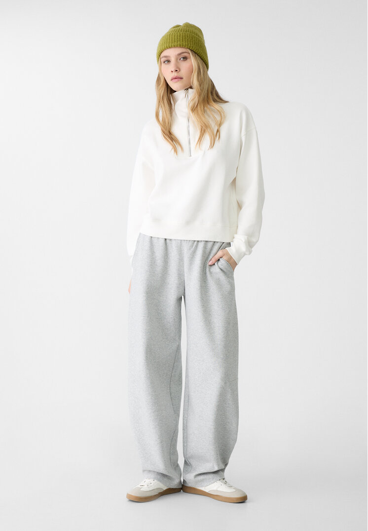 stradivarius pants jogger balloon grey melangiate m_pantaloni with elasticized average waist adjustable with internal laces. side pockets. wide leg.