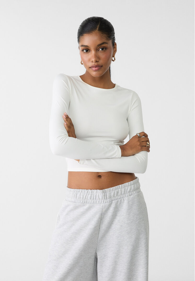 stradivarius polyamide t-shirt with long sleeves white xs_shirt with polyamide blend and long sleeves. available in different colours.