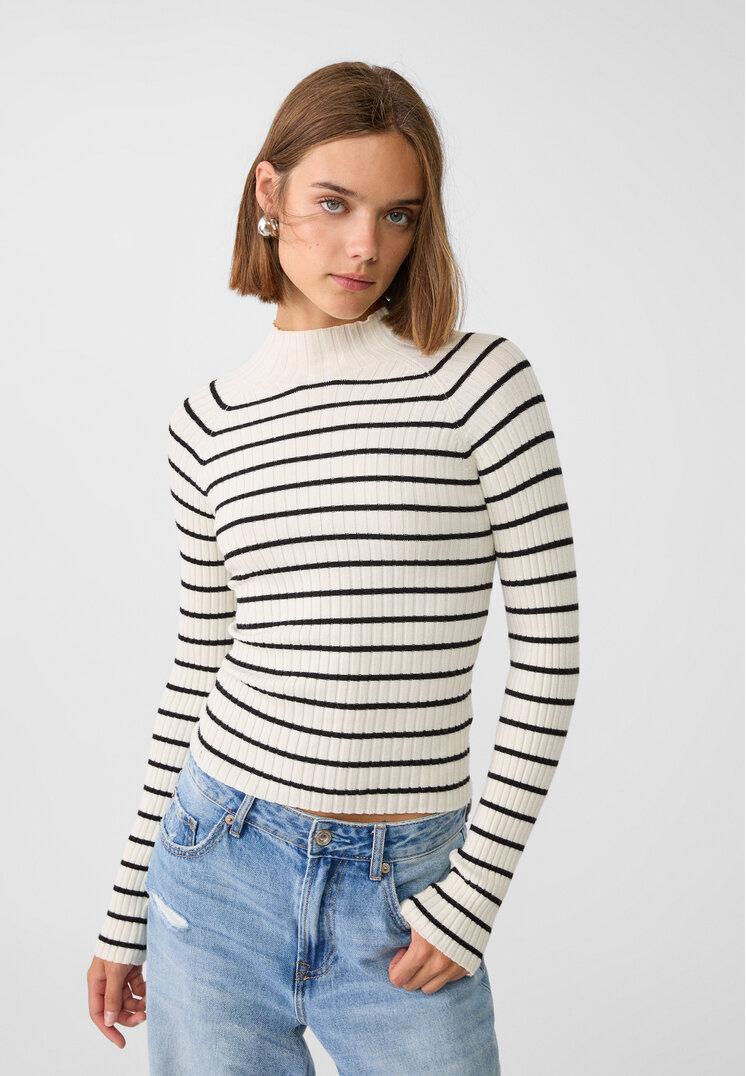 stradivarius pullover in knitted half-necked canneté vanilla xs_pullover with long sleeves in knitted striped sheath with high neck. available in different colours.