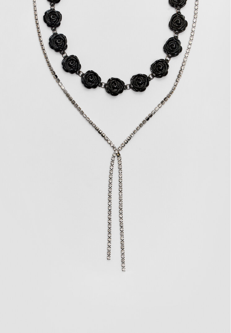 stradivarius set 2 lazo necklaces and roses black os_set 2 lazo necklaces and roses