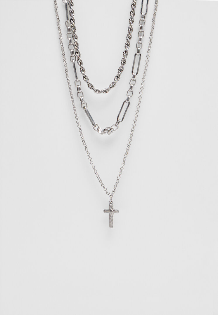 stradivarius set of 3 chains with grey cross available in different colours.