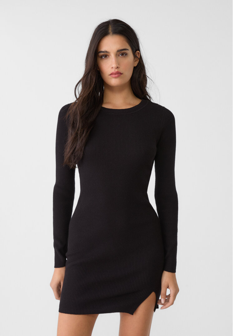 stradivarius short dress with round neck black s_dressed short long sleeves with round neck. available in different colours.