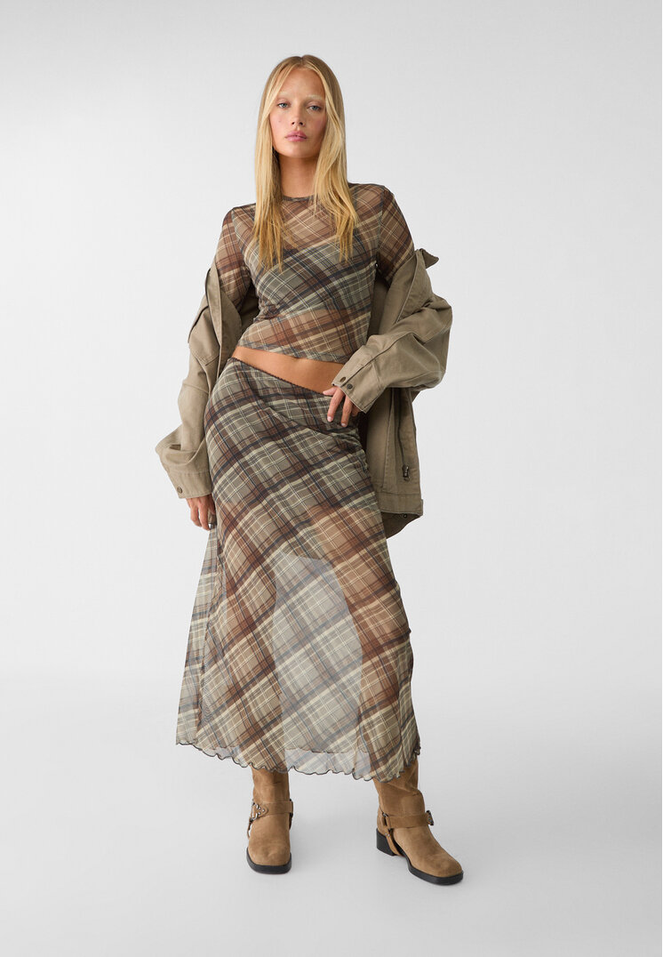 stradivarius skirt midi tulle paintings stone xl_gonna midi in tulle. high elasticized waist. combined inner lining.