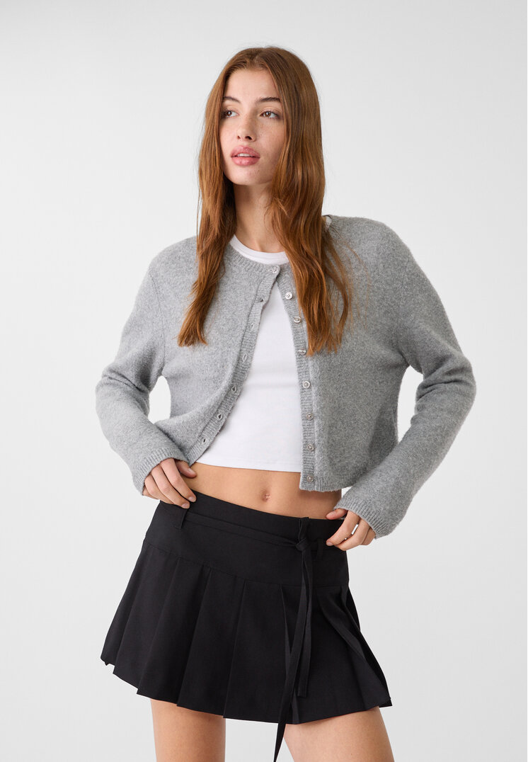 stradivarius skirt pants folds belt black m_minigonna pants with medium waist with loops. pleated detail. belt of the same adjustable fabric with fastening. side closure with hidden zipper in the seam.