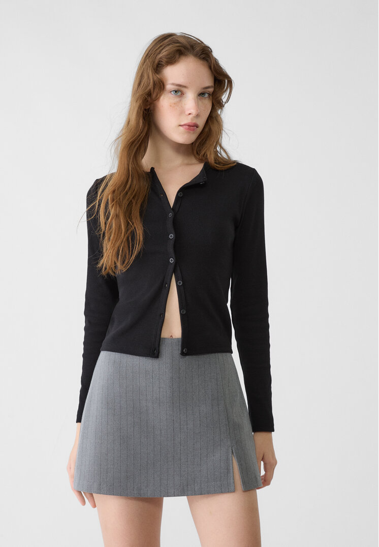 stradivarius skirt trousers with side slit grey melangiate m_skirt short waist with side slit. side closure with hidden zipper in the seam. available in different colours.