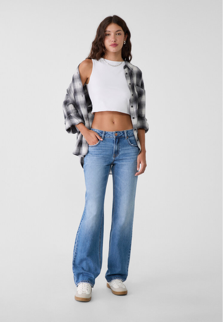 stradivarius straight jeans low denim blue 40_jeans at low waist with loops. front pockets and back applied pockets. straight leg. front closure with zipper and metal button. available in different colours.