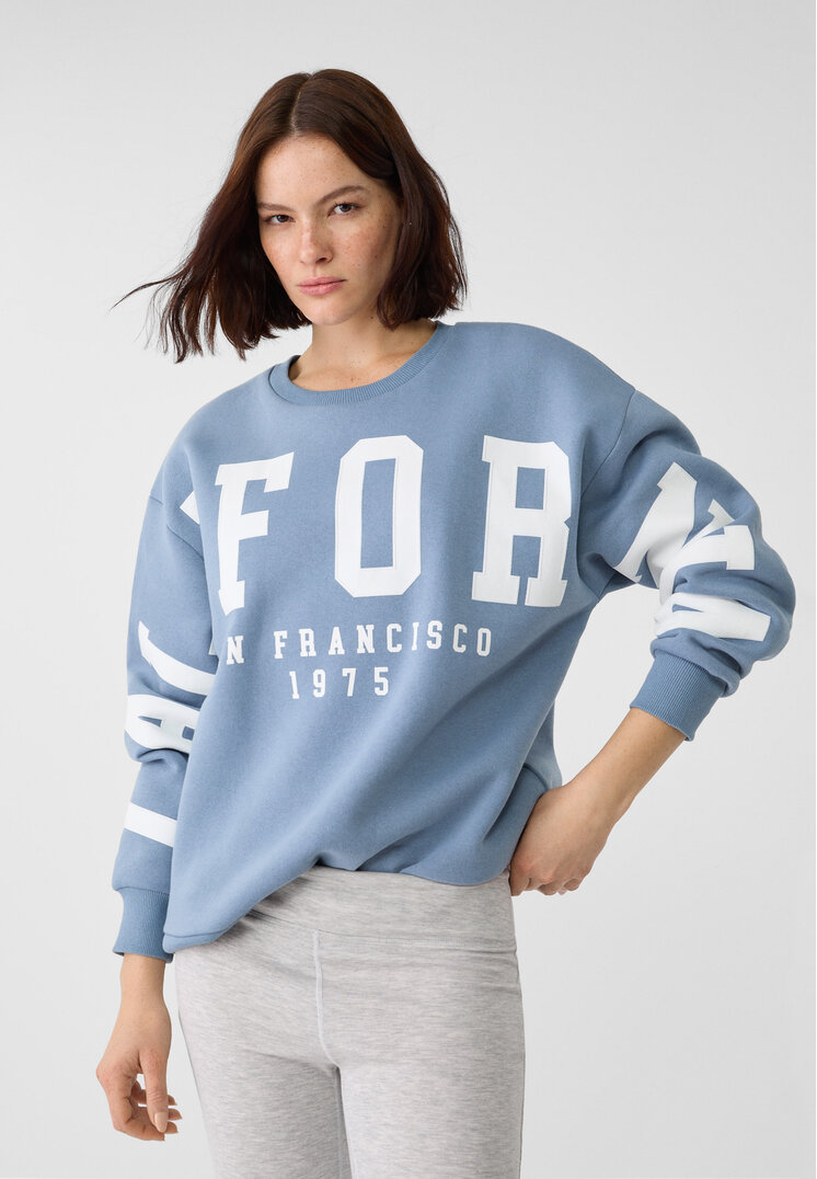stradivarius sweatshirt print blue text m_felpa with round neck and long sleeves. print detail. ribbed finishes. available in different colours.