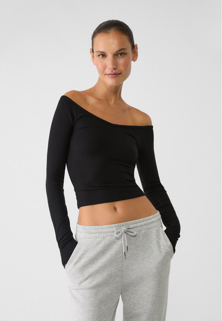 stradivarius t-shirt canneté scollo a v black s_shirt with long sleeves with v-neck available in different colors.