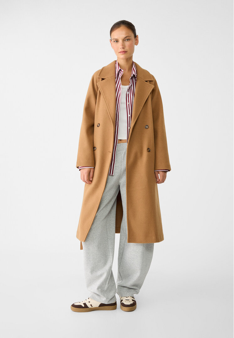 stradivarius trench coat in soft fabric to the light camel touch xl_long trench cap in long sleeves in soft fabric with revers neck. side pockets. double-breasted closure with contrast buttons on the part