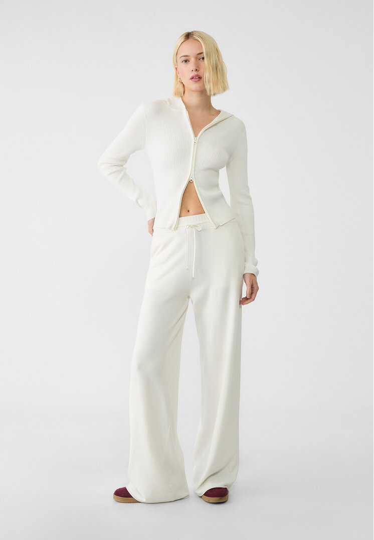 stradivarius trousers mesh relaxation fit ecru m_pantaloni in high waist adjustable with laces tone on tone. side pockets. ribbed finishes. wide and straight leg. available in different colours.