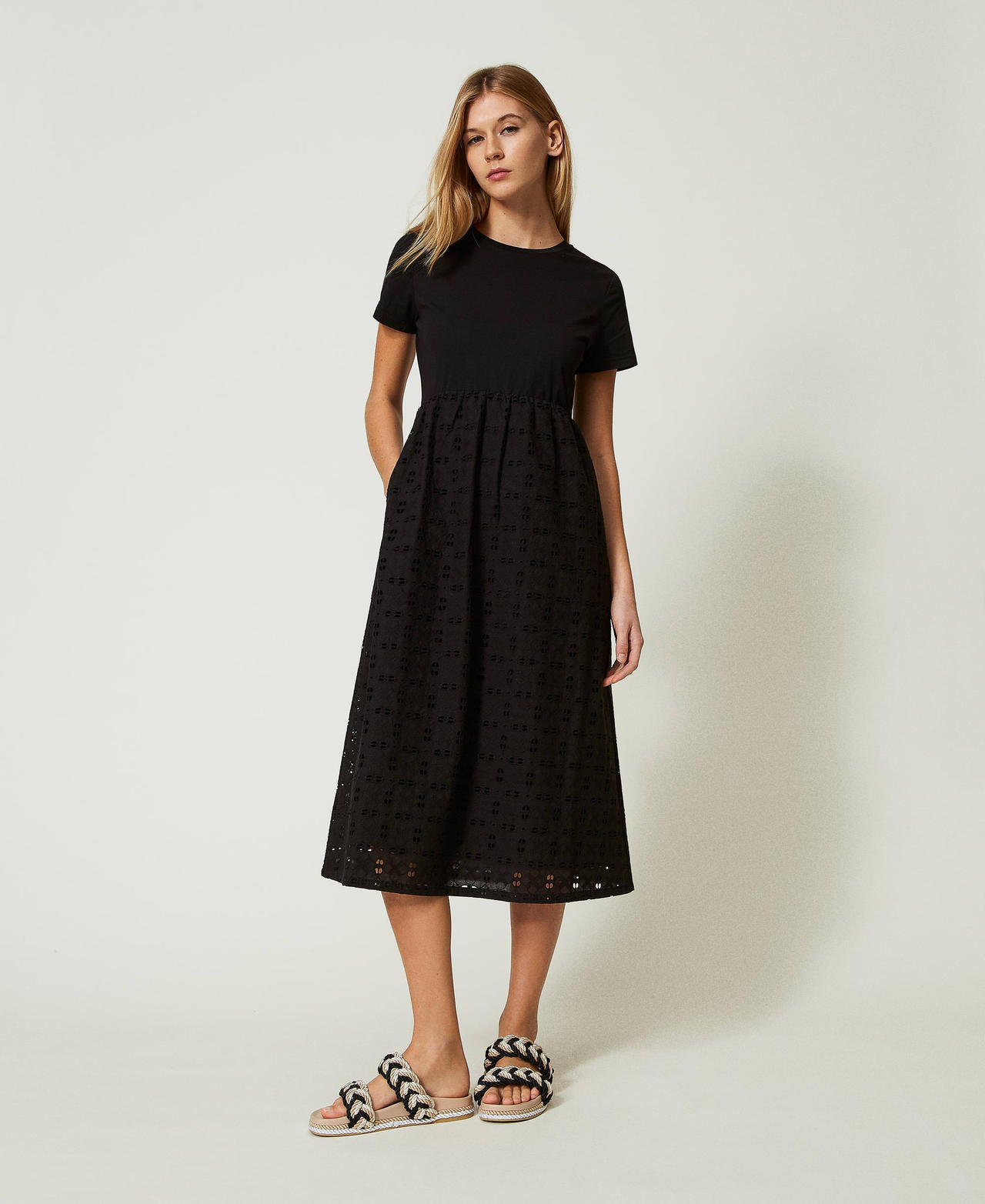 Elevate your Spring/Summer wardrobe with this elegant unisex dress from Twinset. The black longuette dress features intricate embroidery detail, perfect for any special occasion. Designed for both men and women, this versatile piece exudes sophisticated style. Make a statement in Twinset's stylish and timeless dress.
