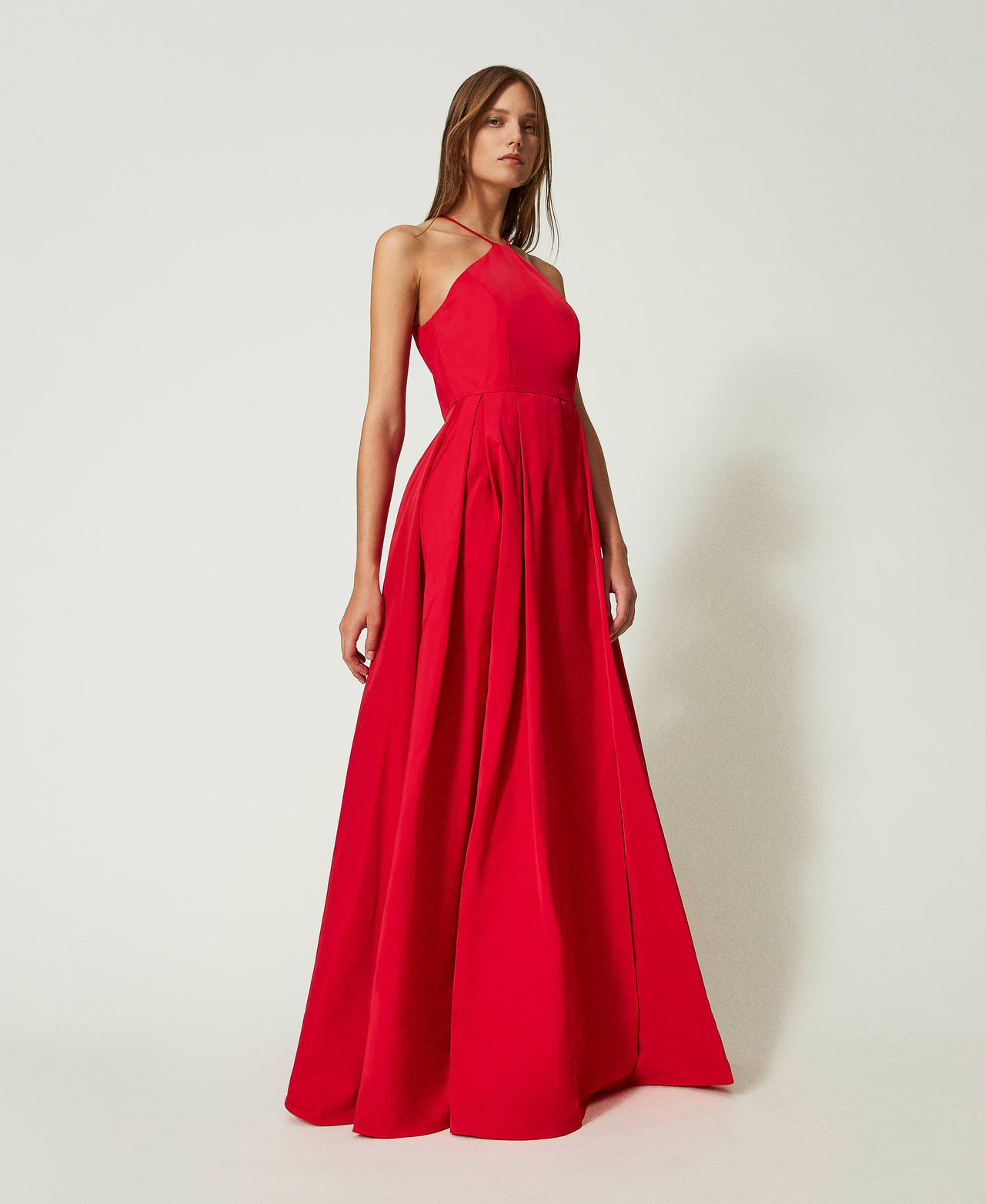 Elevate your Spring/Summer wardrobe with this elegant unisex dress from Twinset. The vibrant red color adds a pop of color to any outfit. Made from taffeta material, this long dress exudes sophistication and style. Perfect for any special occasion or formal event.