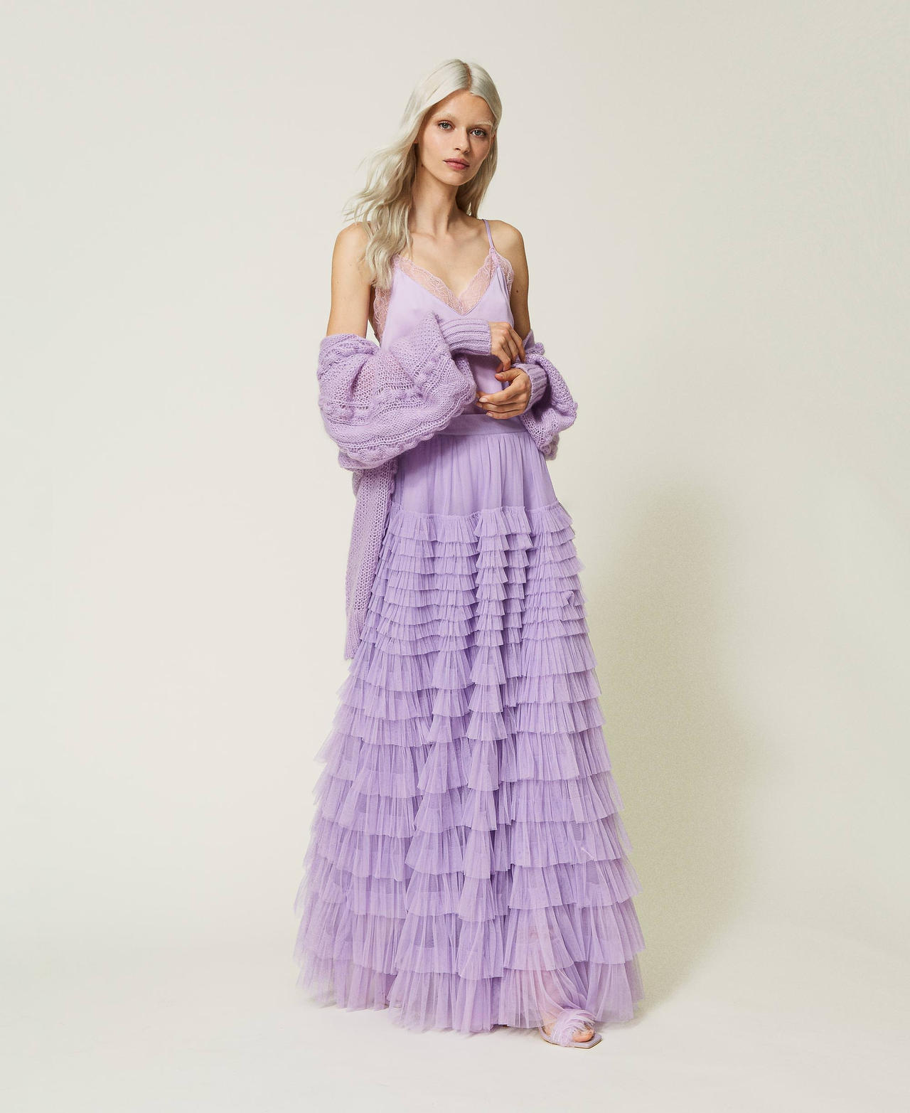 Stay stylish and comfortable this Autumn/Winter season with the Casual unisex skirt from Twinset. This violet tulle maxi skirt is perfect for any occasion, adding a touch of elegance to your outfit. Its versatile design makes it easy to pair with any top or sweater. Elevate your fashion game with this chic and trendy skirt.