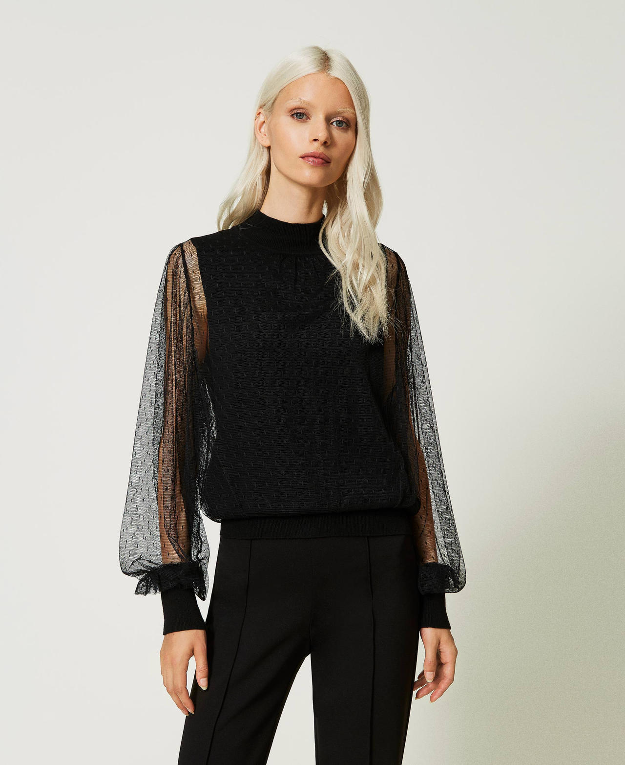 Stay cool and stylish this Spring/Summer with the Twinset unisex Casual top. Made from a mix of knit and tulle materials, this black top is versatile for any occasion. Its breathable design is perfect for warmer weather, keeping you comfortable all day long. Add a touch of edgy sophistication to your wardrobe with this must-have piece.