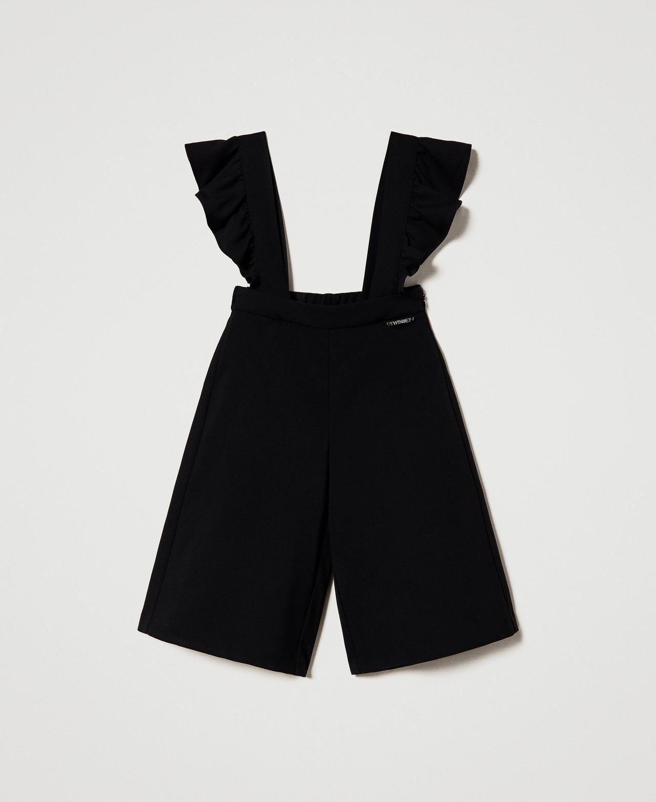 Stay comfortable and stylish in these black wide-leg pants with suspenders from Twinset. Perfect for all seasons, these unisex casual pants are versatile and easy to pair with any top. Whether you're dressing up or going for a more relaxed look, these pants are a wardrobe essential. Twinset's wide-leg pants with suspenders are a must-have for any fashion-forward individual.
