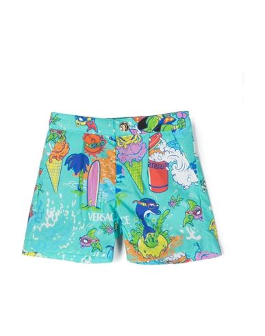 Elevate your casual style this Spring/Summer with Versace's Bermuda for Men in a vibrant Green color. These shorts are perfect for a relaxed yet sophisticated look, whether you're out for a stroll or enjoying a weekend barbecue. Made from high-quality materials, these Bermuda shorts from Versace are a must-have addition to any fashionable man's wardrobe. Stay cool and stylish all season long in these trendy Versace Bermuda shorts.