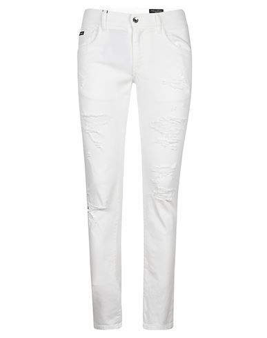 Stay cool and stylish this Spring/Summer season with the Dolce & Gabbana Casual Men's Jeans in crisp white. These jeans are perfect for a laid-back look, featuring a relaxed fit that is both comfortable and fashionable. Made from high-quality denim, they are versatile and easy to pair with your favorite tops and sneakers. Elevate your wardrobe with these timeless white jeans from Dolce & Gabbana.