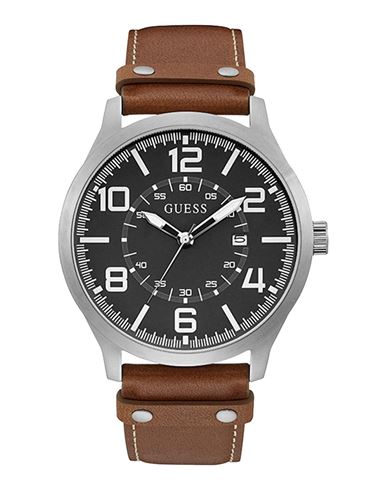 Elevate your style this Spring/Summer with this elegant GUESS men's jewelry in a handsome brown shade. Perfect for the modern man of style, this accessory will add a touch of sophistication to any outfit. Add a timeless piece to your collection with this GUESS wristwatch, crafted for those with discerning taste. Dressing to impress has never been easier with this must-have accessory.