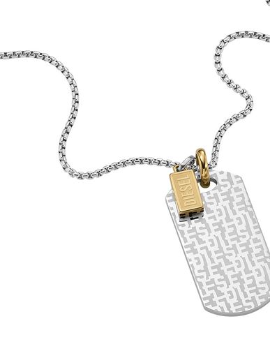 Elevate your Spring/Summer look with this stylish grey necklace from DIESEL. Perfect for the modern man who appreciates quality accessories. This elegant piece adds a touch of sophistication to any outfit. Make a statement with this DIESEL necklace.