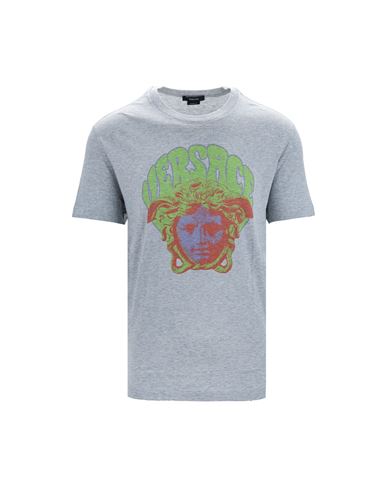 Elevate your casual style with this VERSACE Men's Grey T-Shirt. Made for the Spring/Summer season, this shirt is perfect for everyday wear. The soft fabric ensures all-day comfort, while the iconic VERSACE logo adds a touch of luxury. Stay cool and stylish in this versatile wardrobe staple.