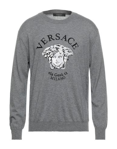 Stay warm and stylish this Autumn/Winter season with the VERSACE Men's Elegant Grey Sweater. This luxurious pullover exudes sophistication and class, perfect for any occasion. Crafted with high-quality materials, this sweater is sure to keep you cozy and fashionable. Elevate your wardrobe with this timeless piece from VERSACE.