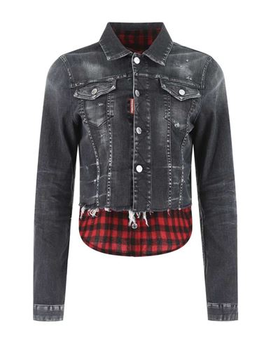 Stay chic and comfortable this Spring/Summer with this sleek black DSQUARED2 casual jacket for women. Perfect for adding a touch of style to any outfit, this capospalla jeans jacket is a must-have for your wardrobe. Made with high-quality materials, this jacket is designed to keep you looking effortlessly cool all season long. Elevate your casual look with this stylish DSQUARED2 jacket.