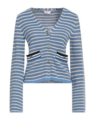 Elevate your Spring/Summer wardrobe with this elegant blue cardigan from LIU •JO. Crafted for women of style, this sweater is the perfect blend of sophistication and comfort. With its versatile design, this cardigan is a must-have for any fashion-forward woman. Stay chic and stylish all season long with this LIU •JO cardigan.