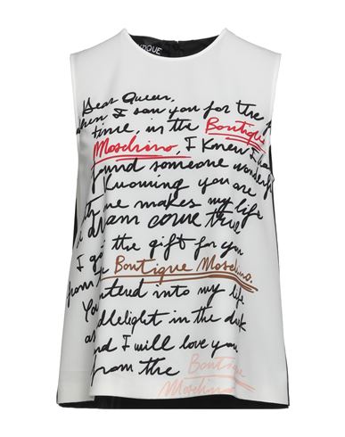 Elevate your Spring/Summer wardrobe with this stylish MOSCHINO top in a crisp white color. This top is perfect for adding a touch of sophistication to any outfit, whether you're heading to a lunch date or a weekend getaway. The feminine design and flattering silhouette make it a must-have piece for any woman of style. Stay effortlessly chic all season long with the gj moschino_top.