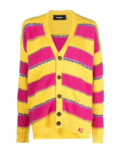 Stay chic and stylish this Spring/Summer with this elegant yellow cardigan from DSQUARED2. Perfect for adding a pop of color to your wardrobe, this sweater is crafted with quality materials and features a timeless design that will never go out of style. Whether you're heading to a brunch or a casual outing, this DSQUARED2 cardigan will elevate your look effortlessly. Upgrade your wardrobe with this must-have piece for the season.