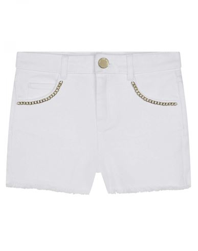 Elevate your Spring/Summer wardrobe with these chic Michael Kors Bermuda shorts for women. Crafted in crisp white, these stylish shorts are perfect for warm weather styling. Featuring a comfortable fit and classic design, they are ideal for casual outings or dressed up with a trendy top. Stay on-trend and effortlessly fashionable with these versatile Bermuda shorts.