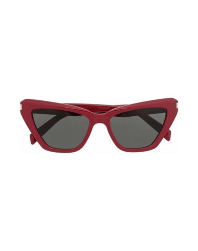 Elevate your Spring/Summer look with these stylish red sunglasses from SAINT LAURENT. These women's sunglasses are perfect for adding a pop of color to your outfit while protecting your eyes from the sun. The SAINT LAURENT logo on the temples adds a touch of luxury to these trendy shades. Stay fashionable and sun-safe with these must-have sunglasses.