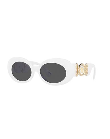 Stay stylish this Spring/Summer with these white VERSACE women's sunglasses. With a modern design and sleek frame, these shades are perfect for adding a touch of glamour to any outfit. Protect your eyes in style with these fashion-forward sunglasses. The VERSACE Sunglasses are a must-have accessory for the sunny season.