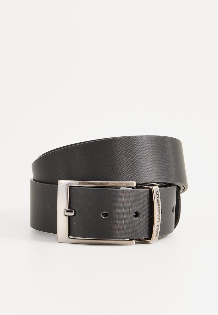 Meet the ultimate accessory for the modern man of style. This sleek, black Karl Lagerfeld belt effortlessly combines casual and elegant vibes, making it perfect for the Spring/Summer season. Elevate any outfit with this versatile belt that adds a touch of sophistication to any look. Get ready to make a statement with this must-have accessory.