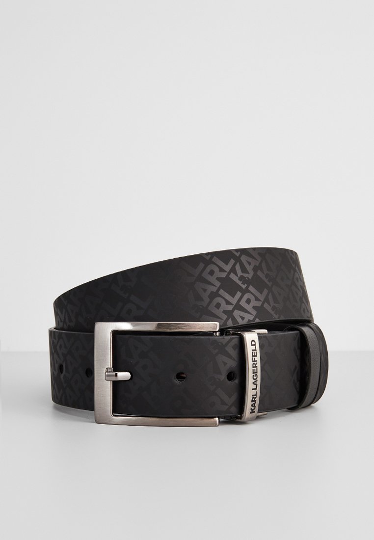 Meet the ultimate accessory for the modern man of style. This sleek, black Karl Lagerfeld belt effortlessly combines casual and elegant vibes, making it perfect for the Spring/Summer season. Elevate any outfit with this versatile belt that adds a touch of sophistication to any look. Get ready to make a statement with this must-have accessory.