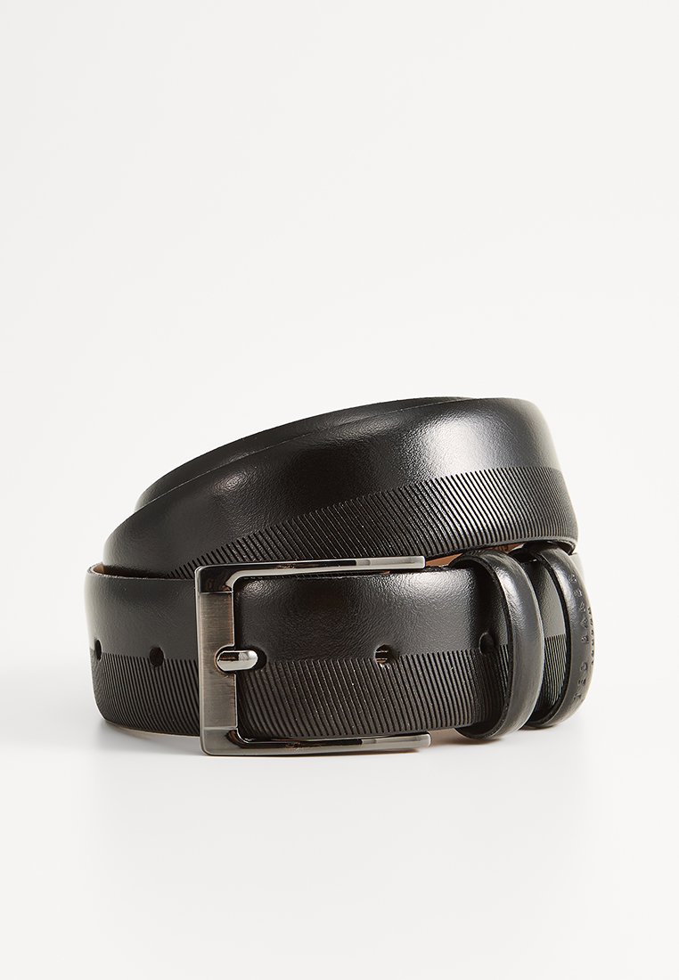 Elevate your Spring/Summer wardrobe with this sleek Ted Baker black belt, perfect for any casual or elegant look. Crafted from high-quality materials, this versatile accessory adds a touch of sophistication to any outfit. Whether dressed up for a special occasion or paired with jeans and a t-shirt, this belt is a must-have for the modern man of style. Embrace effortless sophistication with this Ted Baker black belt.