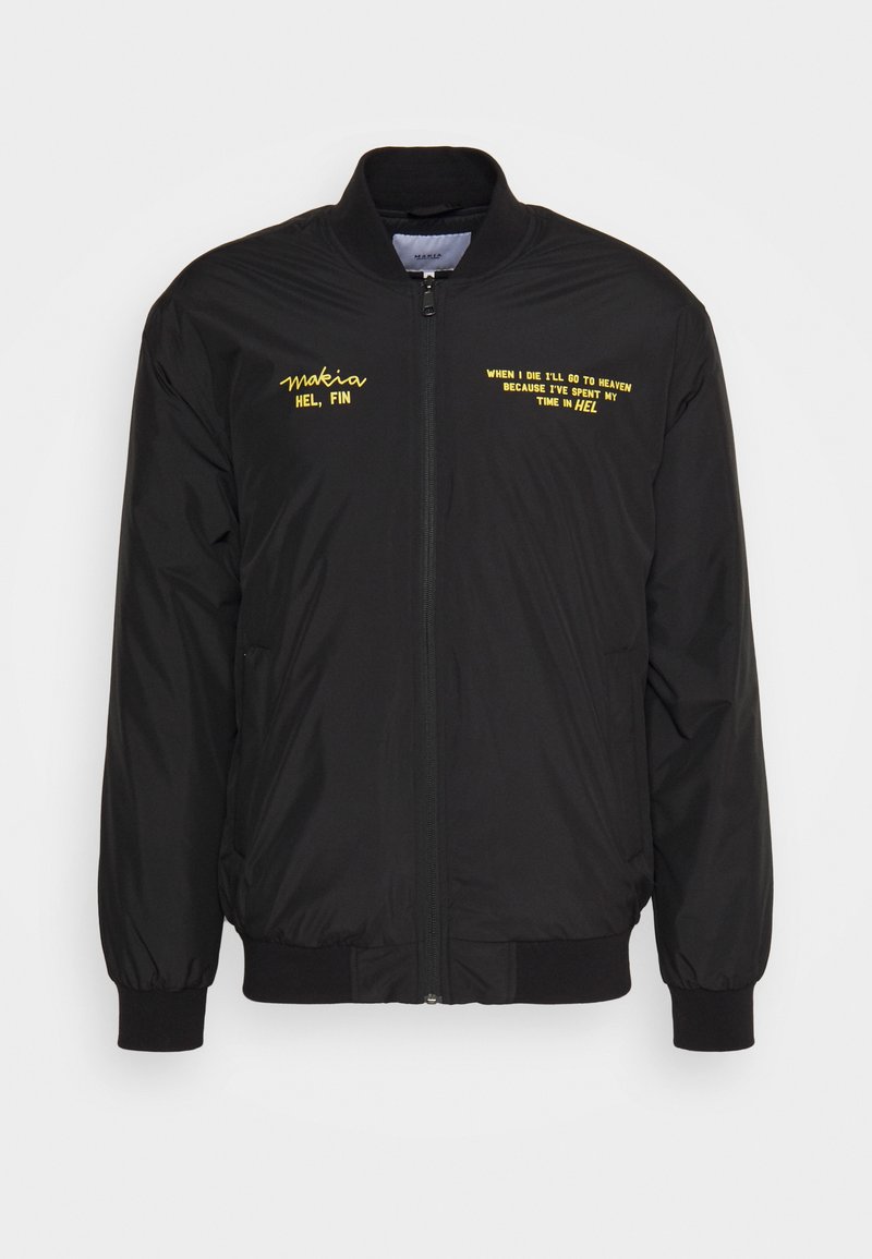 Introducing the Makia Casual/Elegant Man's Bomber Jacket in Black. This versatile piece is perfect for the Spring/Summer season. With its stylish design, this jacket effortlessly combines casual and elegant elements for a sophisticated look. Stay on-trend and comfortable in this must-have wardrobe staple.