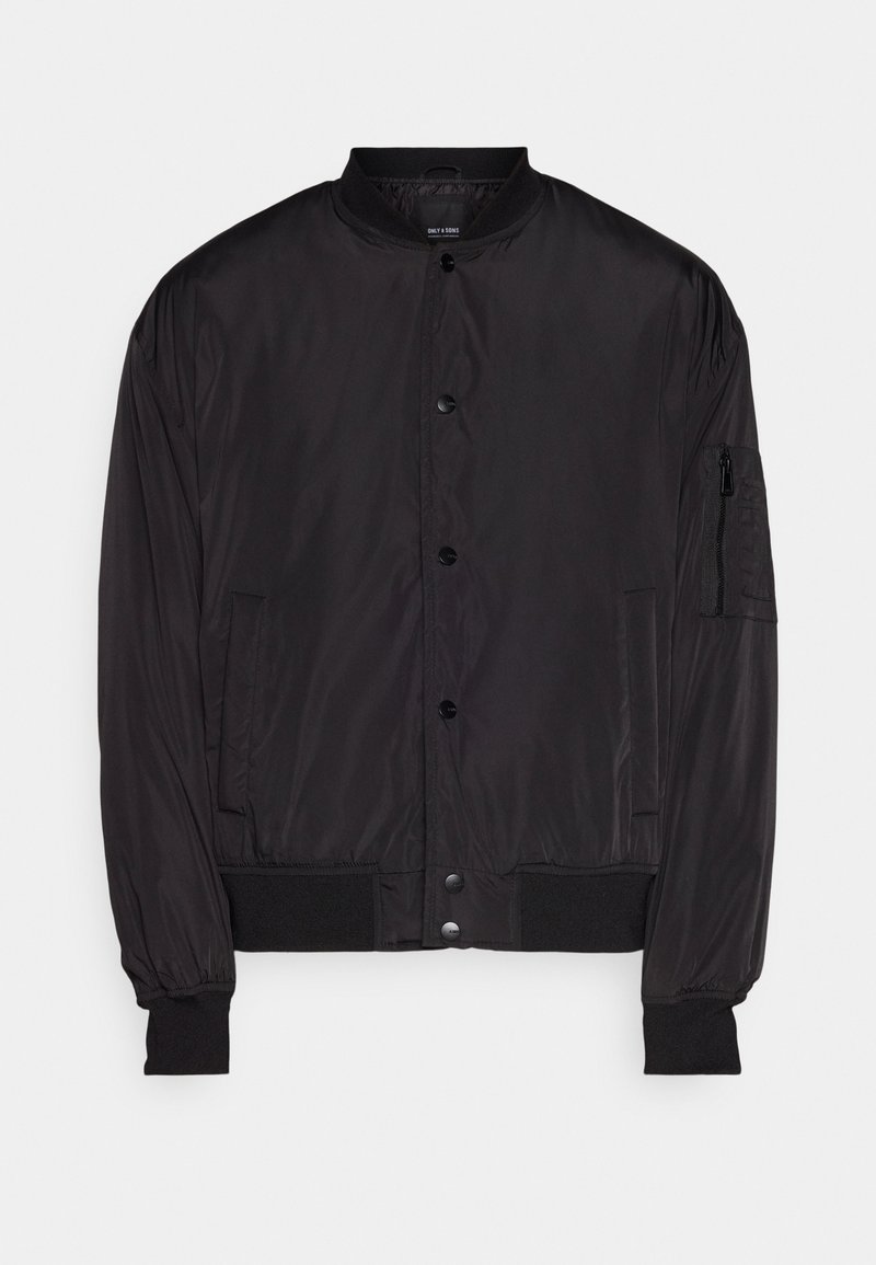 Stay on trend with this Casual/Elegant bomber jacket from Only & Sons, perfect for the Spring/Summer season. The sleek black color adds a touch of sophistication to any outfit. Made for the man of style who values both comfort and fashion. Add this versatile piece to your wardrobe for a timeless look.