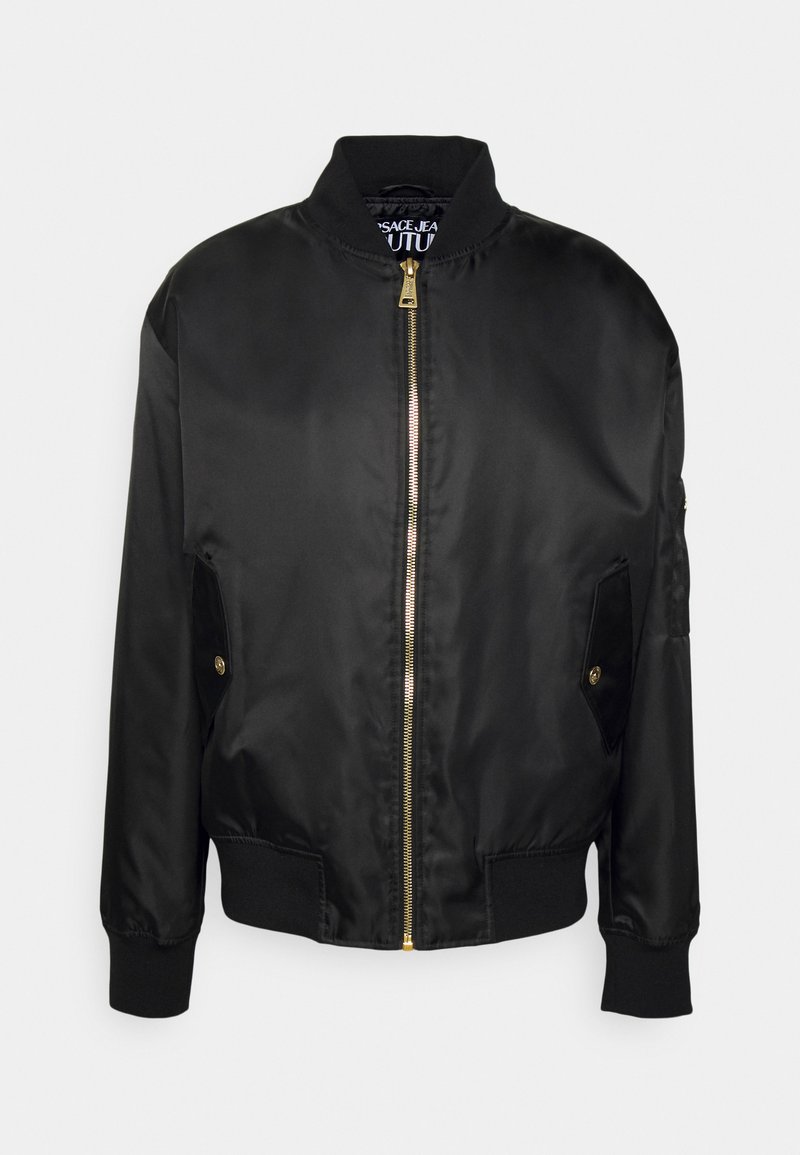 Stay sharp and sophisticated this Spring/Summer with the Versace Jeans Couture Casual/Elegant black bomber jacket for men. Perfect for any occasion, this jacket combines a stylish design with comfort. Elevate your look effortlessly with this versatile piece from a legendary fashion house. Embrace timeless style with a touch of luxury.
