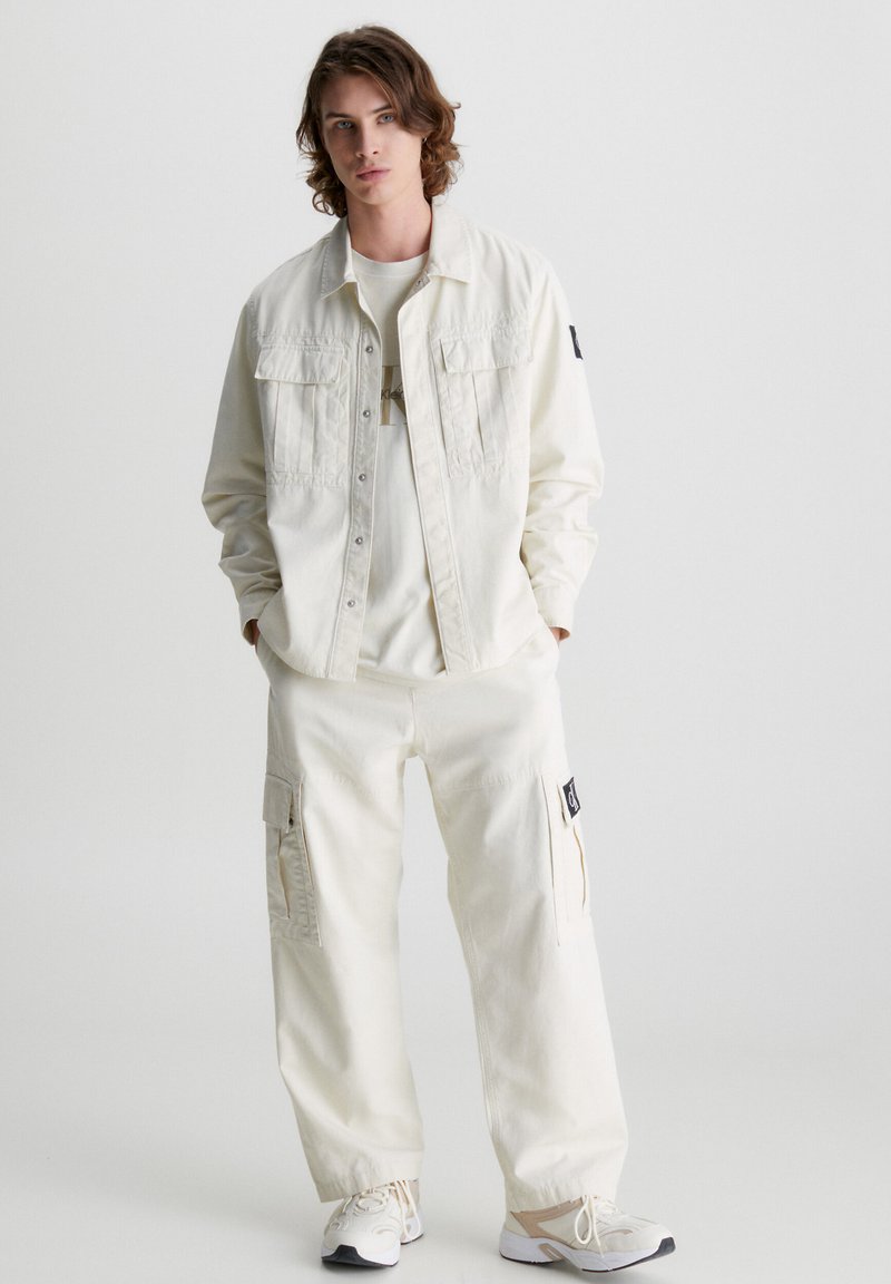 Stay cool and stylish this Spring/Summer season with these Casual Beige Pants for Men from Calvin Klein Jeans. These cargo pants are perfect for a laid-back yet trendy look, featuring a comfortable fit and versatile color. Pair them with your favorite t-shirt or button-down for a casual, cool outfit. Upgrade your wardrobe with these must-have Calvin Klein Jeans cargo pants.