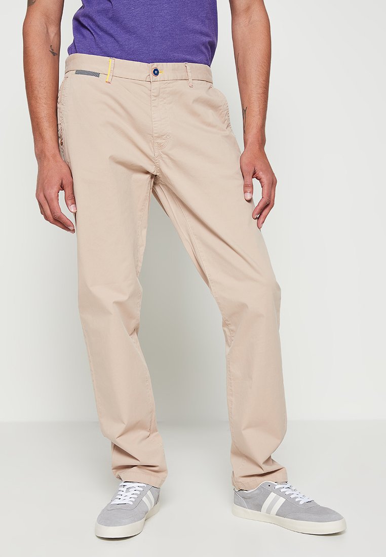 Introducing the NZA New Zealand Auckland Casual/Elegant Man of Style Chino in Beige. Perfect for the Spring/Summer season, this versatile pant combines comfort with a touch of sophistication. Dress it up or down for any occasion, this chino is sure to elevate your wardrobe. Made with high-quality materials for lasting durability and style.