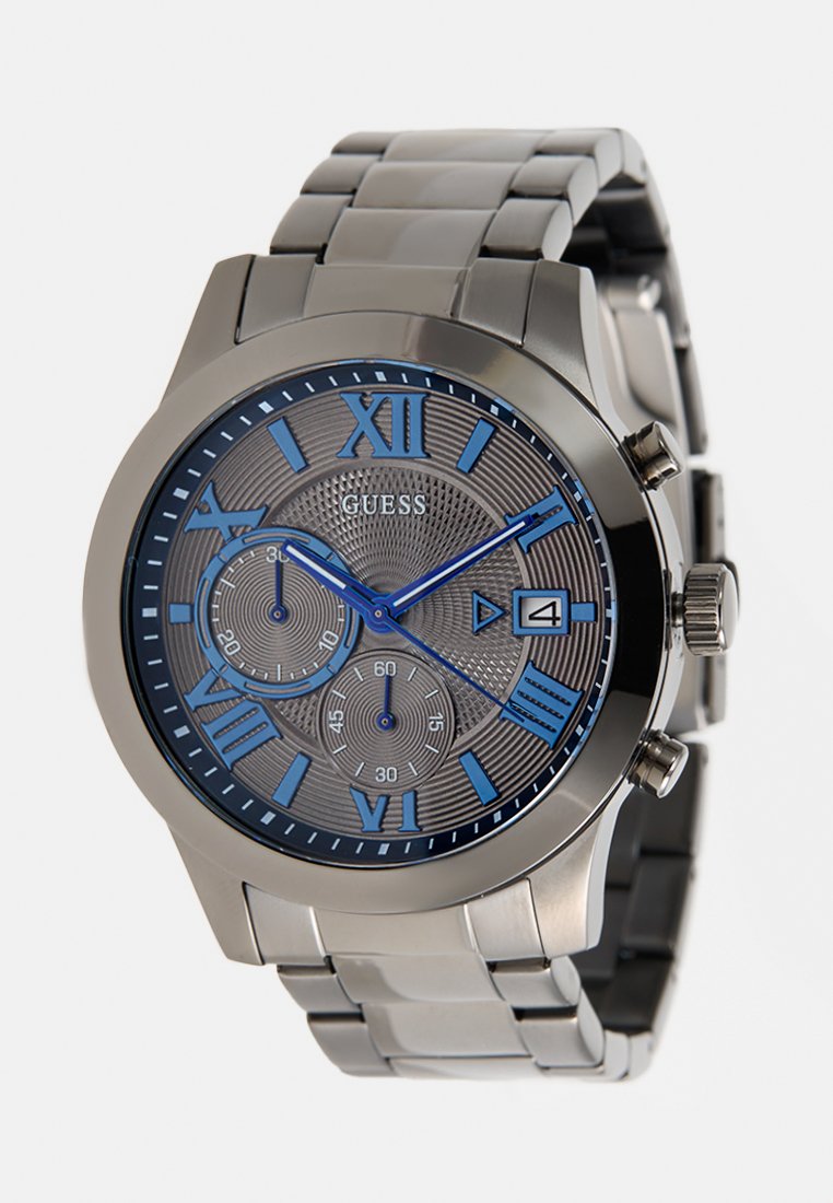 Introducing the Casual/Elegant Men's watch from Guess, perfect for the Spring/Summer season. This sleek timepiece in Grey exudes sophistication and style. With a modern design and comfortable fit, this watch is versatile for any occasion. Elevate your look with the Guess Men's Chronograph.