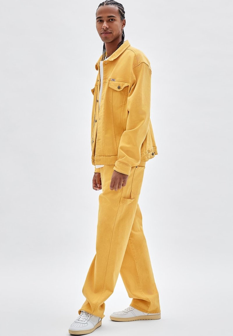 Stay stylish and comfortable this Autumn/Winter season with these casual yellow jeans from Guess. The perfect pop of color to brighten up your wardrobe, these cigarette-style pants are versatile and on-trend. Pair them with your favorite sweaters or jackets for a trendy look that will keep you warm. Upgrade your wardrobe with these must-have pants for men.